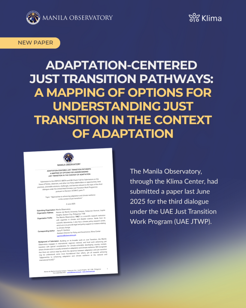 - Manila Observatory submits paper for the UAE Just Transition Work Program