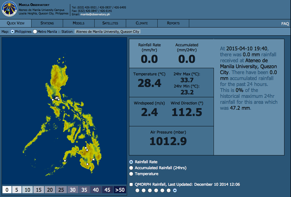 It establishes a network of low-cost automated weather stations (AWS) in Metro Manila. This network provides free and near real-time weather data that can be used to prepare for tropical cyclones and heavy flooding. The plan is to expand the project to other metropolis, such as Iloilo.