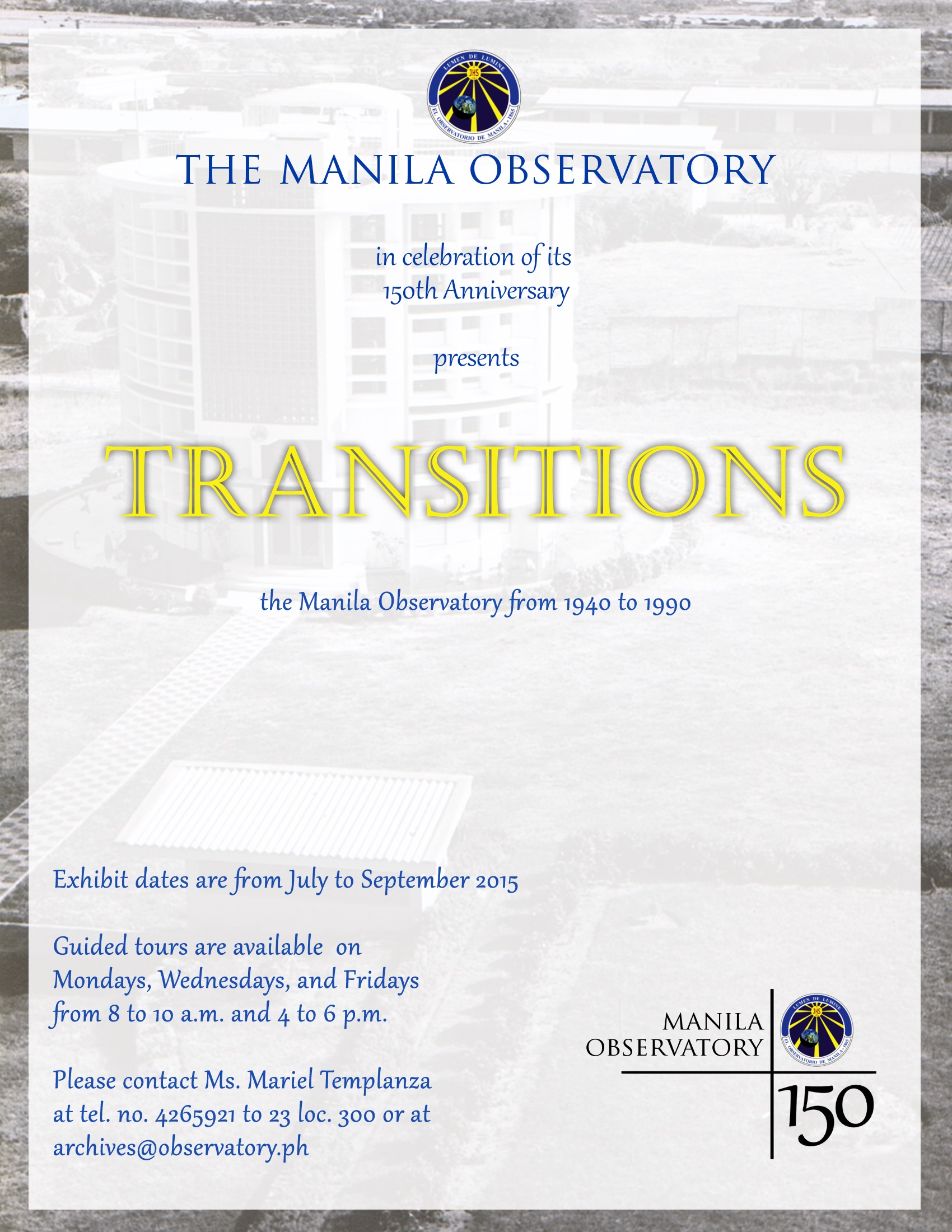 Last Thursday, July 23 marked the opening of Transitions, the second of three exhibits that aim to showcase the Manila Observatory’s vibrant history of scientific research and service in celebration of its 150th anniversary.