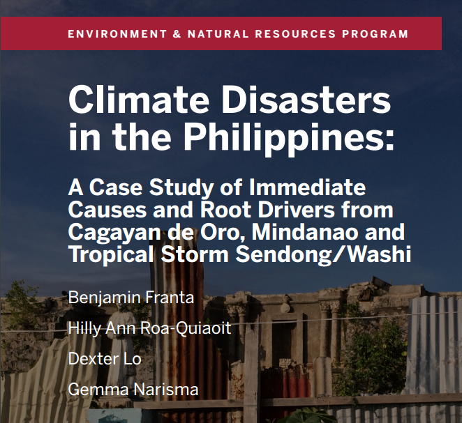 PDF: Climate Disasters in the Philippines: A Case Study of the Immediate Causes and Root Drivers from Cagayan Mindoro, Mindanao and Tropical Storm Sendong/Washi. Published by Belfer Center for Science and International Affairs, Harvard Kennedy School.
