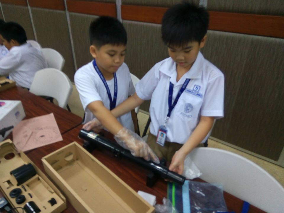 They were very excited and focused while they attached the objective lens and put together the optical and focuser tubes of the refractor telescopes. This is part of their club activities to appreciate the wonders of the stars, planets and space.