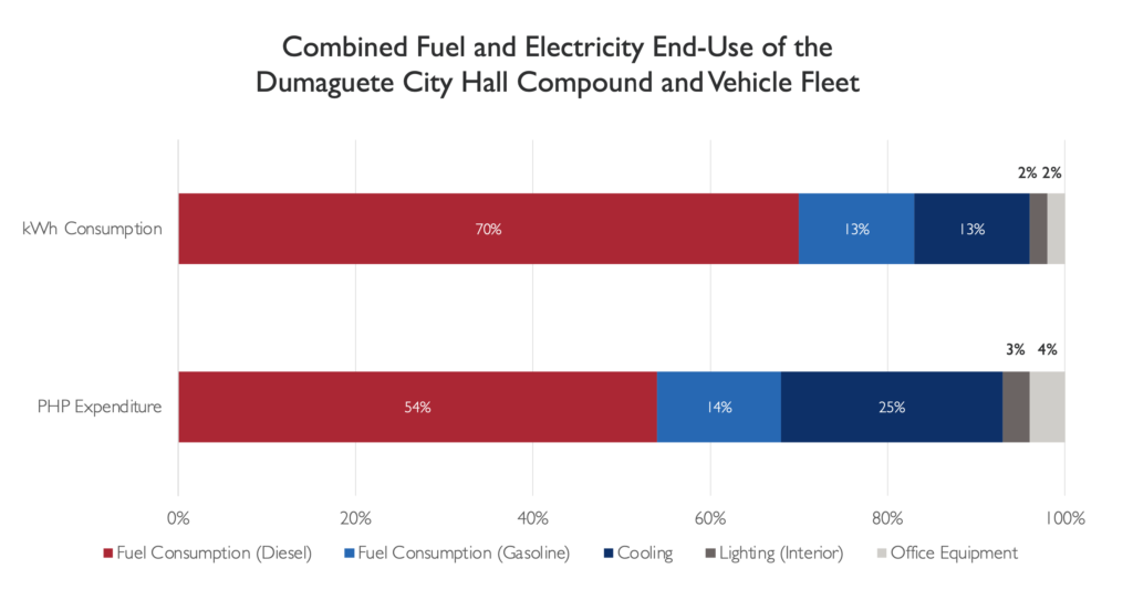Breakdown of fuel and electricity consumption of the Dumaguete City Hall Compound and Vehicle Fleet based on historical utility data