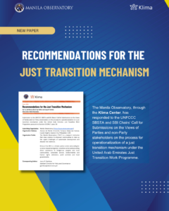 - Manila Observatory Submits Recommendations for the Operationalization of the Just Transition Mechanism (JTM)